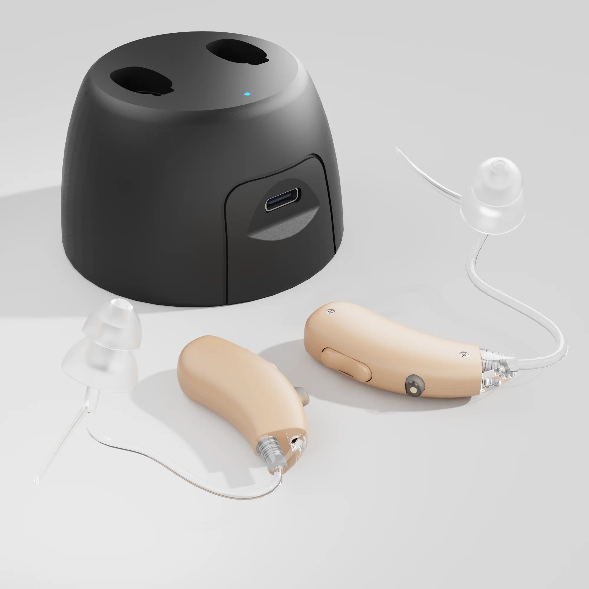 iEarton Earlink OA Li BTE Rechargeable Hearing Aids is with good sound quality, 2 versatile programs, and a sleek, discreet design. With a rapid 3-6 hours charge, enjoy over 24 hours of continuous use. These hearing aids are designed for easy one-handed operation, offer various ear dome options for all-day comfort, and come with a modern magnetic charging station, making them a convenient choice for today's lifestyles.